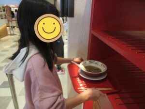 イオンフードコート内にある沢山のお店の中から自分達で好きな店舗を選んでもらい外食体験をするといった内容です。
